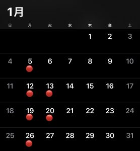 1月の定休日